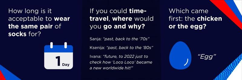 The band told Eurovision.tv LOCO LOCO represents that “we’re all a bit ‘loco’ sometimes”, which is why, according to the group, the ‘80s inspired video starts in Hurricane’s personal ‘house of fun’ before taking us on a tour of their disco jungle via a bathtub filled with glitter balls.